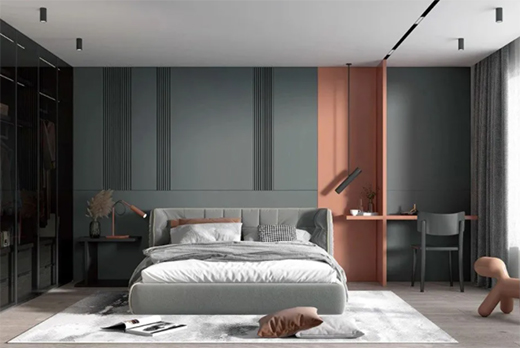 以原木色為主,搭配清爽的巖板風(fēng)彰顯端莊穩(wěn)重的氣質(zhì)。全鋁墻板搭配全鋁衣柜的氣息透露出一股沁人心脾的味道。