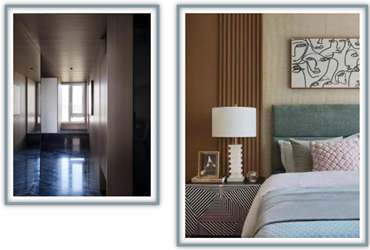 墻面裝上鋁制嵌板,簡潔的線條和淡花紋引導(dǎo)著視線,墻面也變得豐富起來,可將面板保留紋路,與地板的色彩形成對比搭配,不同風(fēng)格可營造出不一樣的高級優(yōu)雅感。
