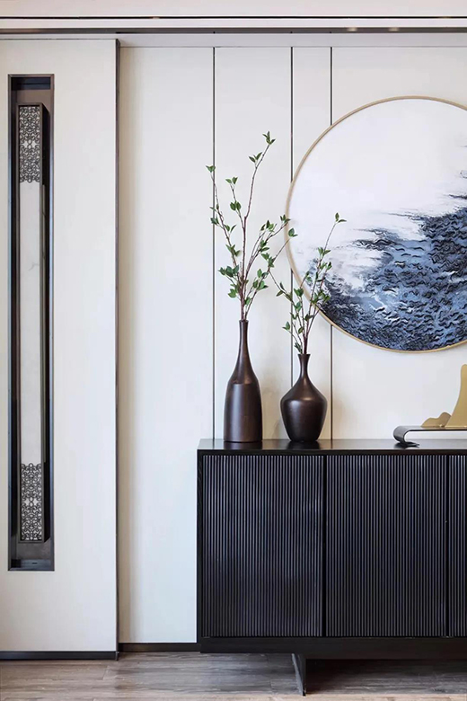 如果您是一個(gè)非常注重家庭文化氛圍打造的人,可以在玄關(guān)處加入中華傳統(tǒng)元素,做到主次分明、錯(cuò)落有致,從而將文化氣息從玄關(guān)引入到其它空間中,提升家庭整體空間的氣息感。