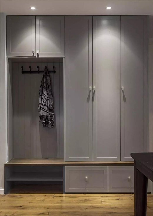 把玄關(guān)處的鞋柜換成翻轉(zhuǎn)式或者按壓式,會比抽屜和柜門方便很多。