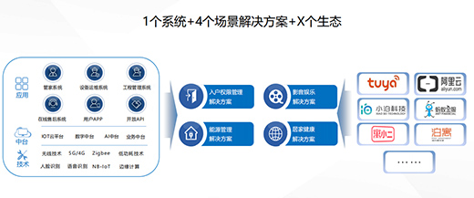 SaaS?平臺依托AI和物聯(lián)網(wǎng)技術(shù),實現(xiàn)了人,空間,設(shè)備的在線管理,實現(xiàn)并落地了全場景產(chǎn)品解決方案,包括影音娛樂,能源管理,入戶權(quán)限和居家健康。