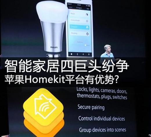 而Homekit的出現(xiàn)加強國內(nèi)廠商競爭,促使分散的零碎的資源向大平臺靠攏,智能家居邁向大眾化市場起到了很大的推動作用。而蘋果、谷歌、微軟、三星四大巨頭角逐智能家居,小廠商們只能各自站隊。