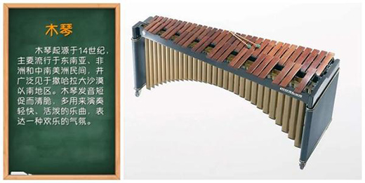 有律樂(lè)器:有固定音高,可以演奏出旋律、和聲。如木琴、馬林巴琴、顫音琴、定音鼓等。