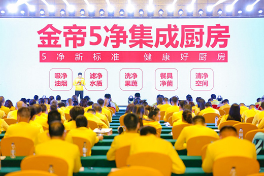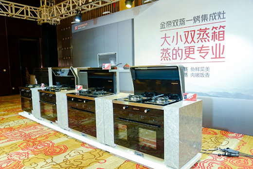 金帝智能廚電董事長趙繼宏;金帝智能廚電總經(jīng)理張正東;金帝智能廚電董事、副總經(jīng)理劉金勇;金帝智能廚電副董事長金波;金帝智能廚電營銷副總經(jīng)理高海峰;金帝智能廚電銷售總監(jiān)劉園波;金帝智能廚電市場部部長周平等領導嘉賓及金帝全國經(jīng)銷商代表出席。