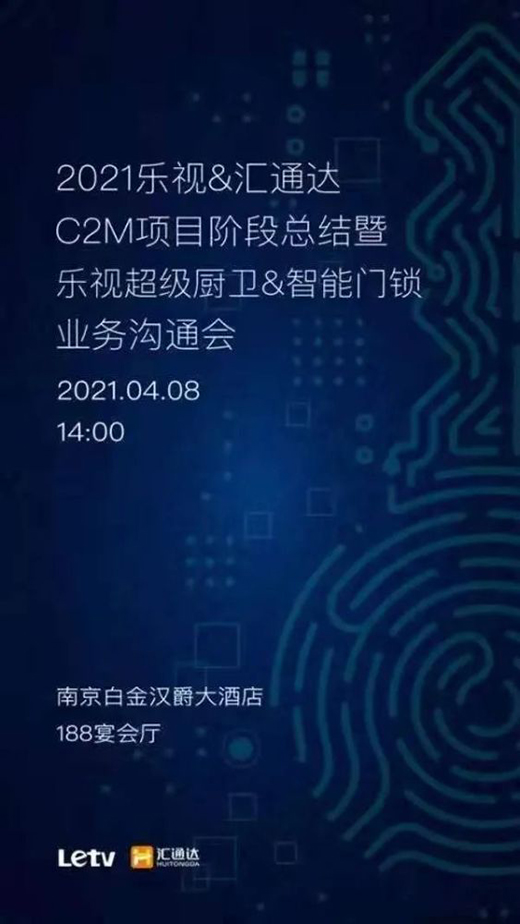 從海報(bào)可以看出,樂(lè)視超級(jí)廚衛(wèi)&智能門(mén)鎖業(yè)務(wù)溝通會(huì)將于4月8日在南京舉行。此次進(jìn)軍新的領(lǐng)域,樂(lè)視依舊與匯通達(dá)合作。