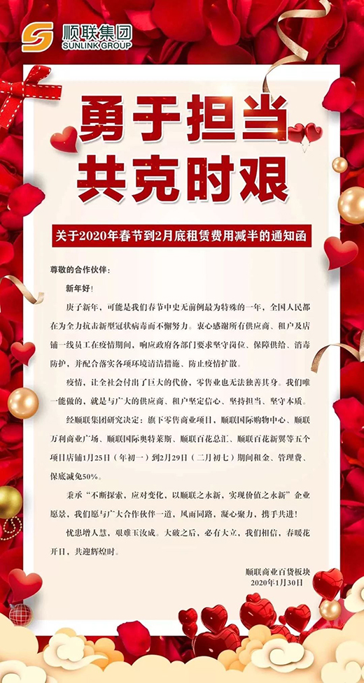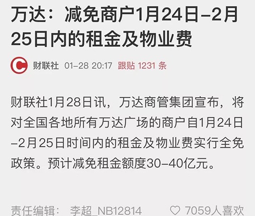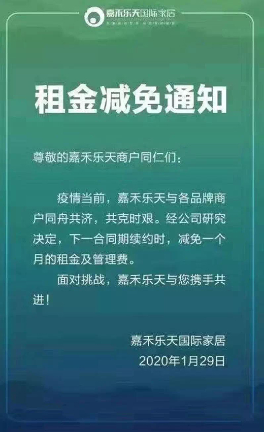 據(jù)媒體報(bào)道,考慮到商戶、租戶由于疫情而遭受的經(jīng)濟(jì)損失,已有萬(wàn)達(dá)、紅星美凱龍等數(shù)百家百貨、購(gòu)物中心實(shí)施了租金減免政策。據(jù)南方+消息,佛山市的美的置業(yè)、順成·大融城、廣佛智城、南海嘉洲廣場(chǎng)、順德宏匯城、嶺南天地、順聯(lián)集團(tuán)、佛山萬(wàn)科等約10家商業(yè)體,均已向本商城或旗下項(xiàng)目發(fā)布了租金減免通知。