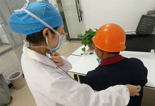 南湖區(qū)中心醫(yī)院青年醫(yī)生和鎮(zhèn)科協(xié)負責人一起對企業(yè)防疫工作進行現(xiàn)場指導,具體介紹了當前階段企業(yè)防疫工作的重點。