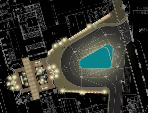 1.地面幾乎被車行道、人行道和景觀水池全部占據(jù),地埋燈需要照亮立面又不影響穿行在其中的行人。