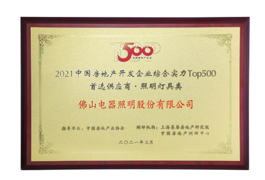 佛山照明入圍2021年中國房地產(chǎn)開發(fā)企業(yè)綜合實(shí)力TOP500首選供應(yīng)商