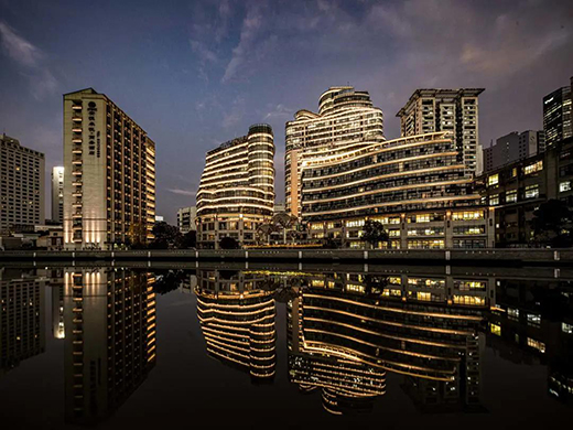 不追求千篇一律的亮,而是烘托出建筑與自然的本真,是這次燈光規(guī)劃所秉持的設(shè)計(jì)原則。為尊重沿岸建筑原有風(fēng)格特征,設(shè)計(jì)團(tuán)隊(duì)深入推敲建筑外立面材質(zhì)細(xì)節(jié),多次進(jìn)行技術(shù)交流討論,反復(fù)驗(yàn)證適合燈具安裝的最佳位置,實(shí)行局部點(diǎn)綴色彩動(dòng)態(tài)效果,整體統(tǒng)一色溫控制方式。