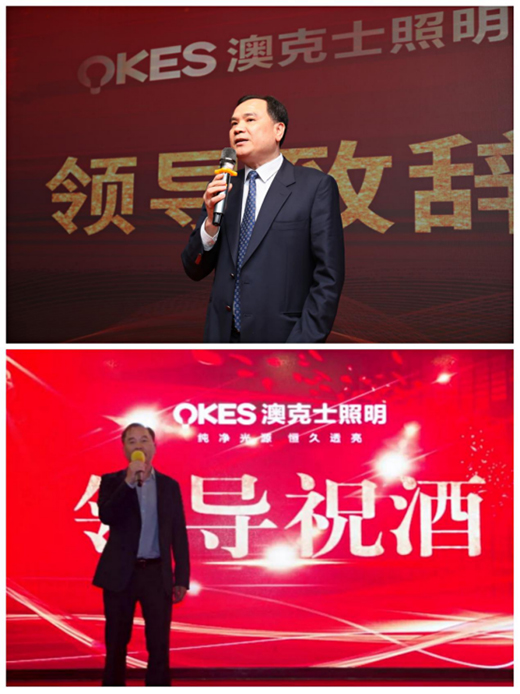 隨后,澳克士照明執(zhí)行董事區(qū)沃鉅發(fā)表致辭,與所有人一起分享了公司的成立、起步和發(fā)展歷程,呼吁大家不忘初心,要始終保持對事業(yè)的堅(jiān)持和熱愛,區(qū)總情真意切的講話引起了在場人員的共鳴和響應(yīng)。致辭結(jié)束后,潘總、區(qū)總及嘉賓一同上臺(tái)祝酒,為今晚的相聚時(shí)光和未來展望舉杯同慶,共同祈愿大家在新的一年里能創(chuàng)造出更耀眼的輝煌。