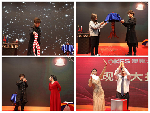 為了更好的活躍現(xiàn)場氣氛,會(huì)中還穿插了幸運(yùn)抽獎(jiǎng)環(huán)節(jié)和魔術(shù)表演,精美的禮品、亦真亦幻的魔術(shù)讓現(xiàn)場的歡呼聲和喝彩聲此起彼伏,現(xiàn)場火熱沸騰。大家?guī)е鴮γ篮梦磥淼钠谠S,歡快地打趣與嬉笑,將年會(huì)現(xiàn)場的氛圍推至高潮。最后,澳克士照明全體同仁上臺(tái)合影留念,整個(gè)年會(huì)在和諧、溫馨、激情、歡樂的氣氛中圓滿落下帷幕。