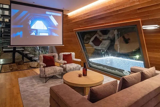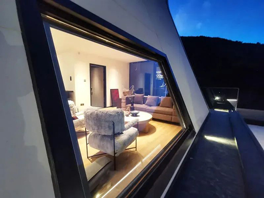 再來看看,室外擁有超大觀景露臺,大片落地窗可將山間美景都盡收眼底,臥室的天窗讓你躺在床上就能數(shù)星星。