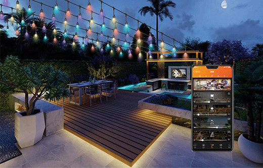 5、當賓客來訪,可以通過手機遠程一鍵開啟“迎賓模式”,燈光輕柔的隨著音樂等協(xié)調(diào)工作,營造溫馨浪漫的庭院氛圍。