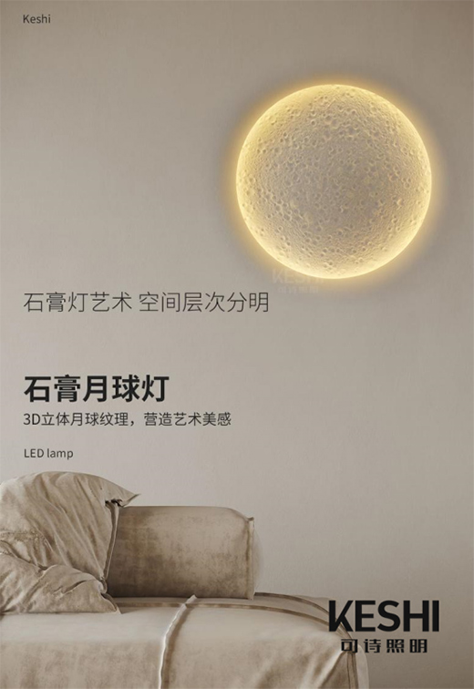 既然被稱為石膏月球燈,那想必大家已經(jīng)猜測到它的原材料是什么了,沒錯,這款產(chǎn)品的燈體由70%的石膏粉制成,能很好地和墻上的膩子結(jié)合在一起,達到光與建筑渾然一體。而產(chǎn)品的燈面經(jīng)過特殊工藝處理,與月球表面相似,“月球”更能在智能技術(shù)的支持下,實現(xiàn)任意調(diào)光調(diào)色。