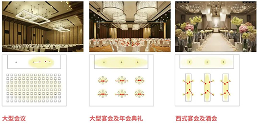 作為酒店中重要的社交場所,宴會(huì)廳多用來舉辦婚禮活動(dòng)、公司聚餐、演講報(bào)告、新聞發(fā)布、產(chǎn)品展示、中小型文藝演出等。