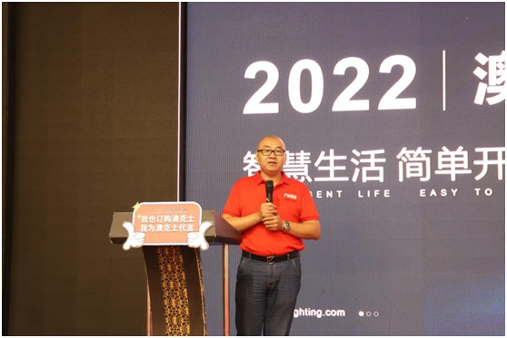 發(fā)布會(huì)伊始,主持人以幽默風(fēng)趣的主持風(fēng)格向來(lái)賓們介紹了本次會(huì)議以及參會(huì)人員,接著澳克士照明總經(jīng)理潘振華先生登臺(tái)發(fā)表致辭。潘總首先對(duì)現(xiàn)場(chǎng)所有嘉賓、經(jīng)銷商家人們及媒體朋友的到來(lái)表示熱烈的歡迎并致以誠(chéng)摯的問(wèn)候。