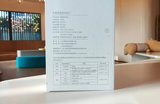 包裝側(cè)邊是米家即熱飲水機(jī)C1的基本參數(shù),產(chǎn)品由寧波心想科技有限公司代工,其實(shí)在小米有品上已經(jīng)有多款心想科技的飲水機(jī)產(chǎn)品,從用戶反饋來(lái)看,口碑都還不錯(cuò),這估計(jì)也是小米看中心想科技最重要的原因之一了。