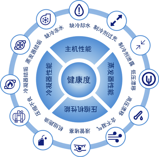 通過準確的反應(yīng)主機、壓縮機、冷凝器及蒸發(fā)器的性能變化,及時發(fā)現(xiàn)性能衰減類故障。