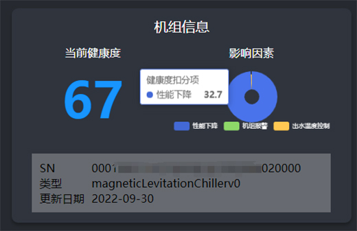 該健康度由美的與中國建筑科學研究院合作設(shè)計完成,用一個數(shù)值綜合反映出機組報警、控制、性能衰減等信息。