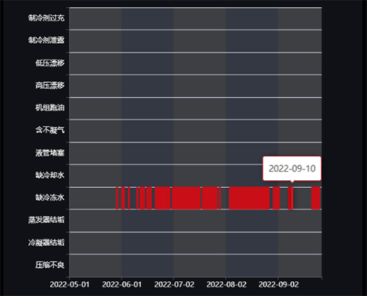 包括制冷劑泄漏、冷凝器結(jié)垢、液管堵塞、機組跑油、壓縮不良等。通過提前預(yù)警及準確定位,減少主機異常停機。