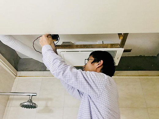 由于家中裝修的扣板不是集成吊頂,因此安裝時(shí)比較麻煩,好在原有的龍骨可以借用,只需將原有的扣板重新切割,然后再去裝修市場買一個(gè)現(xiàn)成的白色浴霸框即可。先生自己動(dòng)手,很順利地完成了安裝。