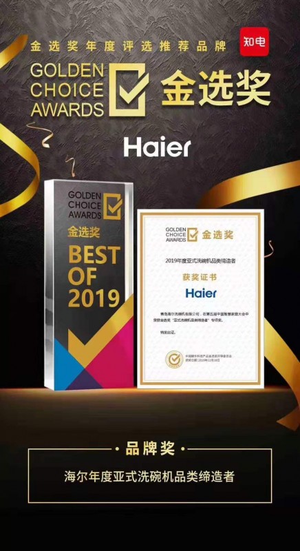 近日,在由知電主辦的中國(guó)本土高端家電的權(quán)威獎(jiǎng)項(xiàng)——金選獎(jiǎng)評(píng)選結(jié)果出爐,海爾憑借專為中國(guó)廚房量身定制的亞式洗碗機(jī),獲評(píng)金選獎(jiǎng)“2019年度亞式洗碗機(jī)品類締造者”專項(xiàng)獎(jiǎng)。