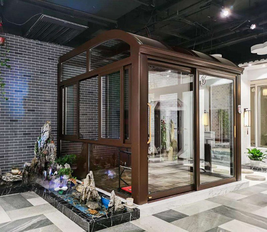 亮閣陽(yáng)光房以雙層中空玻璃+多腔體結(jié)構(gòu)型材+汽車(chē)級(jí)密封膠條,以及中空鋁條一體折彎技術(shù),形成優(yōu)異