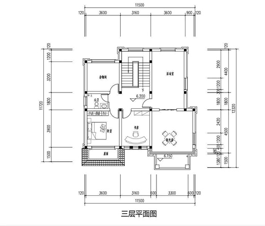 三層設(shè)有一間臥室、書房、雜物室、活動室和陽光房,臥室可作為客房區(qū)域,有客人來拜訪需要過夜的額也有地方住。陽光房不僅是晾曬衣被的好場地,仔細(xì)裝扮一下作為休閑花園也十分漂亮、