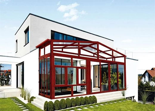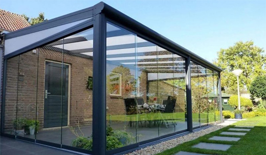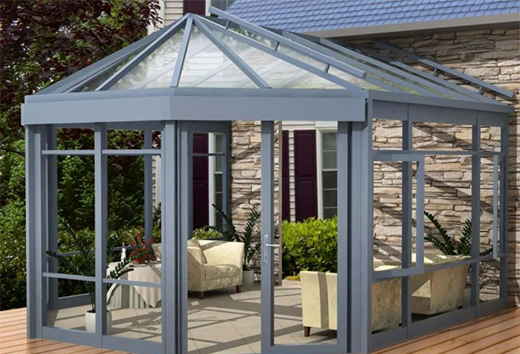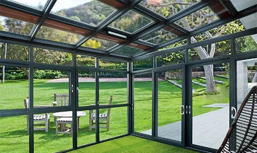 在選擇玻璃上,陽光房的頂部使用夾膠雙層鋼化玻璃;而陽光房的立面玻璃則多使用中空玻璃。因為考慮到高空墜物的危險,夾膠玻璃的安全防爆性會更好且不易碎裂掉落傷人,在陽光房里面的人會很安全。