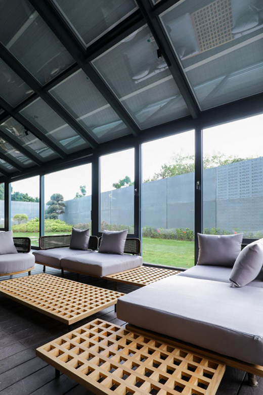 當陽光、熱氣聚集在陽光房頂部,圣米蘭陽光房產品系列配備智能室內外遮陽解決方案,個性化智能百葉,多種開啟方式,可聲控、搖控一鍵操作,讓陽光隨心所欲。