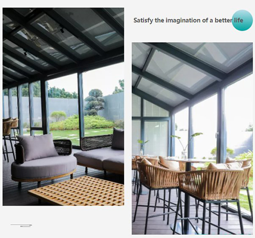 圣米蘭陽光房系列,把自然引進住所,讓陽光沐浴生活,與星空透明接觸,和風雨親近對話,讓生活充滿一幅如詩如畫的風景,為平淡的生活增添浪漫情調。