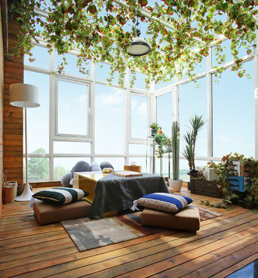 陽(yáng)光房一般從露臺(tái)或陽(yáng)臺(tái)變化而來(lái),也有洋房、別墅在院子里加蓋的,空間可以不必太大,配上大大的玻璃窗,光線非常好,種點(diǎn)花草,擺上自己喜歡的裝飾物,仙氣飄飄,絕對(duì)是家里最受歡迎的區(qū)域。