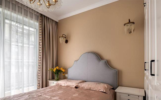 簡單的拼接窗簾傾注了浪漫風情,床頭運用的圓弧線條,呈現(xiàn)出輕柔,無拘無束的睡眠感受。精致的水晶吊燈,放任思緒無意識地去感受各種可能的聯(lián)系。