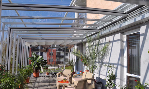 而新型移動陽光房選擇的材料則沒有這方面問題,鋁合金骨架加聚碳酸脂板可定制范圍很大,平頂、人字頂、弧形頂等多種造型都能滿足。