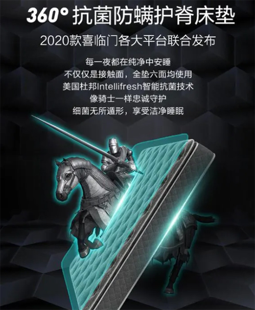 2020年,喜臨門全新推出抗菌防螨系列床墊,喜臨門城市愛情京東旗艦店同步上新抗菌防螨床墊。該系列床墊采用美國杜邦抗菌和瑞士山寧泰防螨雙核技術(shù),凈護您的健康睡眠。