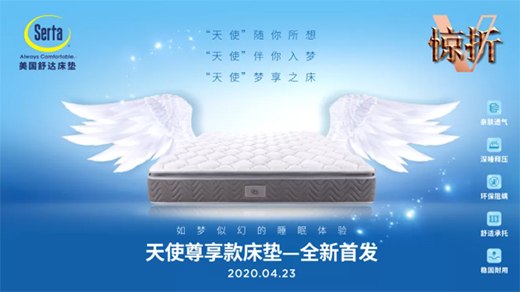 舒達(dá)「驚折5」全新推出2020年新款床墊——天使尊享款,舒達(dá)三大核心技術(shù)支撐,關(guān)注五大睡眠問題。舒達(dá)妙而扣彈簧、 舒柔絎縫層、邊緣加固系統(tǒng),讓床墊的支撐性與包裹感兼具。給予身體舒適支撐,分散身體重量,提供柔軟呵護(hù)。優(yōu)選乳膠,高回彈,貼合度高,健康阻螨更環(huán)保。舒適減壓層設(shè)計,深睡釋壓,體驗匠心工藝帶來的舒適睡感。