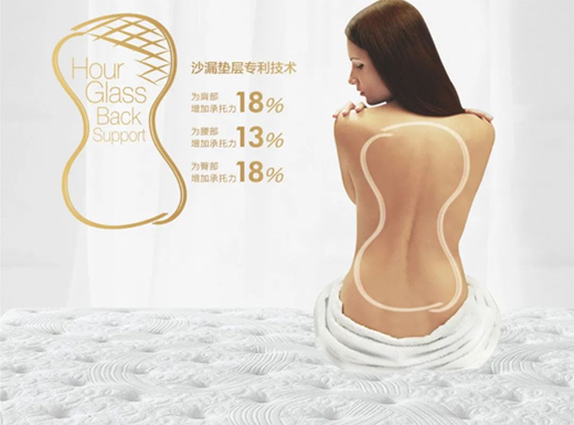斯麗比迪沙漏護(hù)脊墊層技術(shù),能有效承托身體壓力,為你緩解肩膀和臀部壓力,滿足伏案工作一天的上班族,回到家想躺在床上徹底放松的愿望。