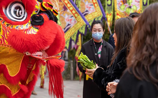 伴隨著陣陣鼓聲,精彩的舞獅節(jié)目正式開始。六頭靈巧活潑的“雄獅”在鑼鼓聲中進(jìn)行了上凳表演、樁陣表演、高桿表演等,走鋼絲、騰空跳等高難度動(dòng)作輕松完成,引得一片掌聲與歡笑聲。