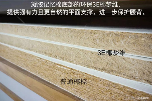 此外,在凝膠記憶棉底下,每隔約16cm,就有個類似紐扣電池的顆粒,均勻分布在整個平面,這是保健磁石。磁療的最大作用,就是促進血液循環(huán)和鎮(zhèn)痛,所以建議在腰痛嚴重的情況下,直接拆開面層,墊在上面。凝膠記憶棉底部有一層環(huán)保3E椰夢維,提供一個強有力的平面支撐。進一步保護腰背。有別于常見棕墊,除了不用膠水,提高環(huán)保性和防蟲性,它的舒適度也比普通棕墊更高,依然很硬朗有力,但少了突兀感,也更適合搭配彈簧來豐富睡感。