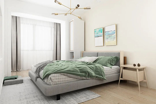 在挑選家具時(shí),為了能讓房子有更多的收納空間,許多人會(huì)傾向選擇大容量的家具。但臥室空間本就有限,家具的款式和尺寸要選擇低矮款式,降低視覺(jué)重心,能讓空間保持通透感,讓人有舒適視覺(jué)。選擇簡(jiǎn)單小巧、質(zhì)感輕,尤其是可隨意組合、拆裝、收納的家具。既可以容納大量物品,又節(jié)省空間,不會(huì)產(chǎn)生擁擠感。