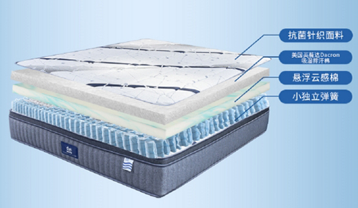 為了讓睡眠更加舒適,50°家床墊還采用了懸浮云感棉材料和抗菌防螨針織面料。其內(nèi)部形成了一個(gè)自由循環(huán)的微氣候環(huán)境,具有極強(qiáng)的透氣性能,能有效去除潮濕。表面親膚柔軟,具有抗菌性能,從內(nèi)到外打造出一個(gè)健康的睡眠環(huán)境。