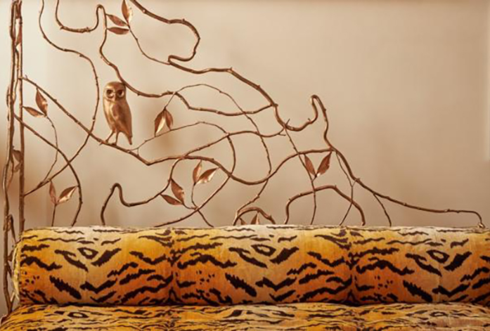 懸掛在保琳臥室中,令人驚艷的《植物結(jié)構(gòu)鏡》(Structure Végétale mirror,估價:20萬至30萬英鎊)亦是克洛德的獨創(chuàng)之作。這面氣勢磅礴的鏡子裝飾著放大比例的銅葉,使日常生活的片刻也能沐浴在大自然的奇幻詩意之中。