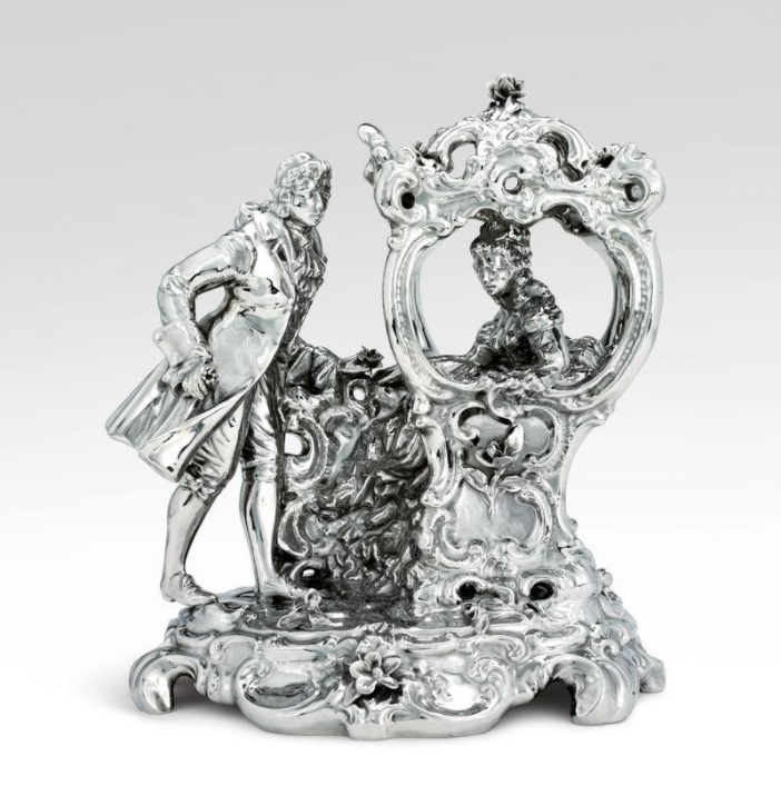 既可愛又詭異的《貴賓犬》(Poodle,估價:100萬至150萬英鎊)多年來安放在保琳的玄關(guān),優(yōu)雅地藏于萊蘭夫婦的玄關(guān)柜下,以其威嚴(yán)的獅身人面像姿態(tài)和精致的卷毛迎接來訪者。貴賓犬曾是實用的工作犬品種,后來成為法國皇室與貴族的寵愛犬,并被路易十六封為「國犬」。當(dāng)昆斯創(chuàng)作《French Coach Couple》時,這種品種已成為都市上流社會的一種視覺象征。因此,這座雕塑具有雙重意義:既是狗本身,也是藝術(shù)品,兩者皆代表著彰顯成功與階級的文化資本。