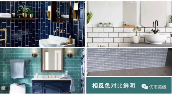 如果想要達到一種震撼的效果,那么使用對比鮮明的反差色是必需的。比如冷色與暖色、亮色與暗色,應用到美縫上就如:黑磚白縫、黃磚藍縫等,強烈的反差色會特別刺激眼球,增強整體空間的裝飾效果,使空間更加美觀。相反色主要用于展示廳、商業(yè)場所。