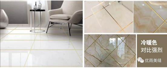 美縫劑冷暖色搭配是指在鋪貼材料的縫隙中填充冷色系和暖色系相互搭配的美縫劑。如果瓷磚偏黃、偏橙,可以選用金色、黃色等偏暖色系的美縫劑;如果瓷磚偏青、偏灰,可以選用銀色、灰色等偏冷色系的美縫劑。暖色系讓空間變得溫暖、舒適,而冷色系使空間變得冷靜、清新。冷暖色搭配產(chǎn)生強烈的對比效果,使鋪貼材料更加突出,適用于各種室內(nèi)空間。