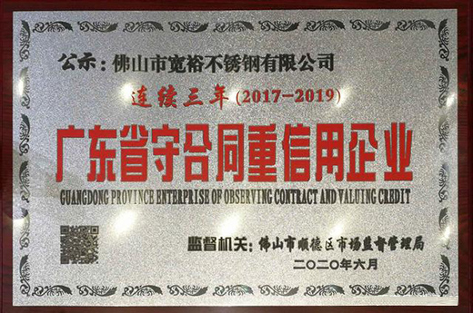 寬裕管業(yè)“廣東省守合同重信用企業(yè)”