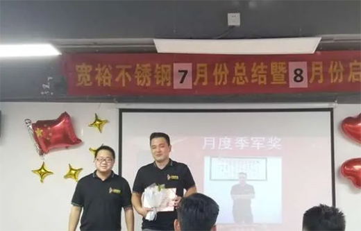 七月的炙熱和風(fēng)雨,沒(méi)有阻擋我們的追逐夢(mèng)想的腳步;樹(shù)蔭中傳來(lái)的聲聲蟬鳴,是為我們的夢(mèng)想鼓勁的鑼鼓,轉(zhuǎn)眼間已到8月,在8月4日這天我們也迎來(lái)了寬裕管業(yè)的7月份總結(jié)暨8月啟動(dòng)大會(huì)!