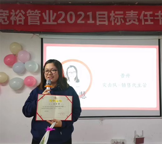黃寬銘總經(jīng)理在本次活動總結(jié)中說到:在寬裕的平臺上,我們可以不斷晉升不斷發(fā)展。2021年,我們除了銷售目標(biāo),還有人才目標(biāo),很多事情都是靠人才做出來的,團隊與能力非常重,你解決問題的能力越大,你收獲越大,你的價值就越大。期待2021年是達成目標(biāo)的一年,是每個寬裕人共同成長的一年。希望我們所有人可以享受成長的快樂,期待我們所有人都可以加速成長。
