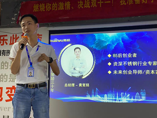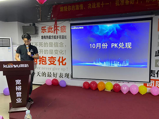 寬裕管業(yè)總經(jīng)理黃寬銘先生在本場(chǎng)活動(dòng)中說(shuō)到11月份的“號(hào)角”是增士氣、搞增長(zhǎng)、強(qiáng)團(tuán)隊(duì),并且公布了一項(xiàng)特別的“PK”玩法,期待我們除了爭(zhēng)霸賽之外,其他每個(gè)月的氣氛也可以搞起,一樣要做的轟轟烈烈。同時(shí),黃總在會(huì)上說(shuō)到,我們?cè)谌魏螘r(shí)候,一定要圍繞客戶的價(jià)值去做。善于傾聽客戶的需求,積極主動(dòng),持續(xù)為客戶創(chuàng)造價(jià)值和服務(wù)。